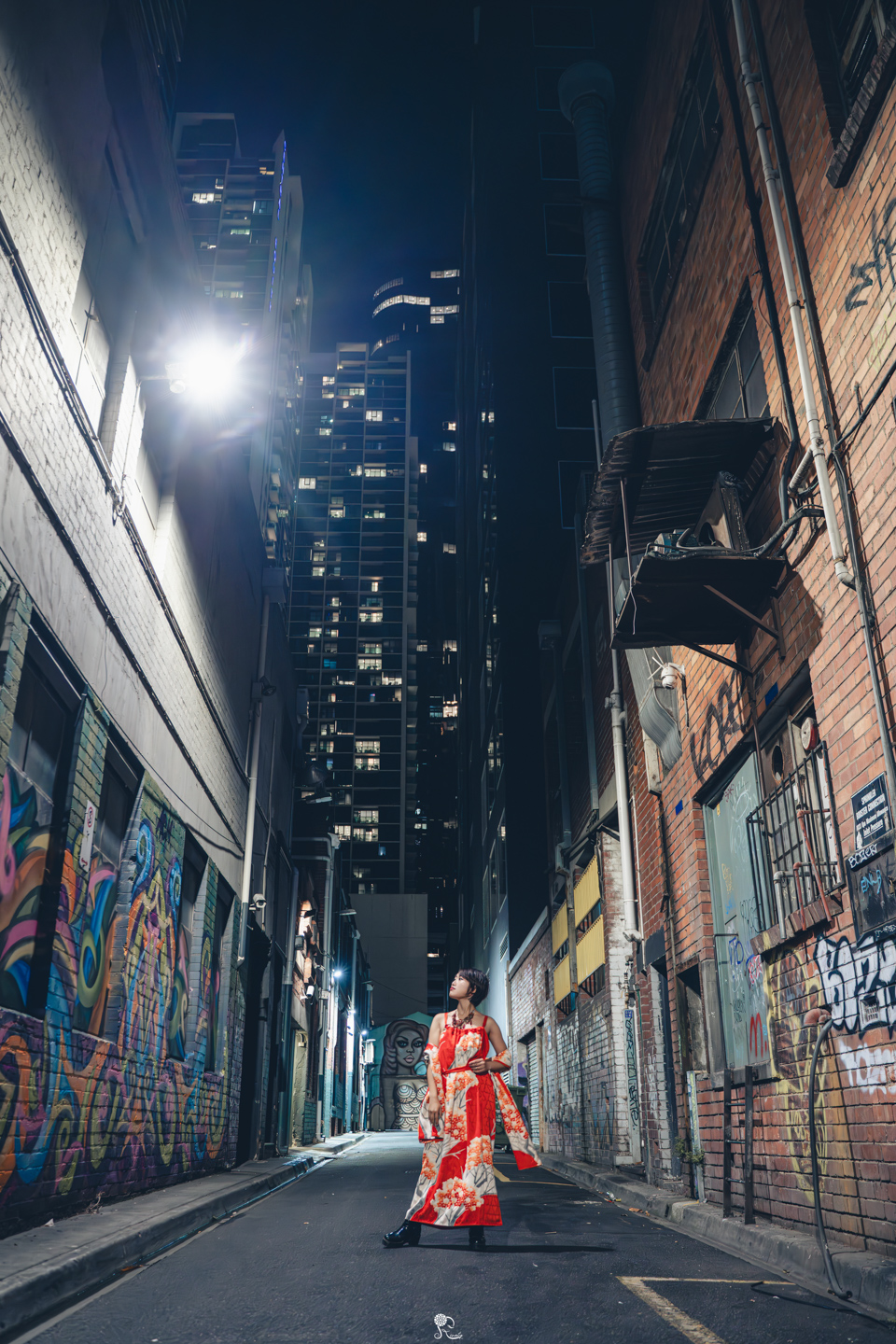 こちらの作品も夜間に撮影。宿泊していたホテルの目の前の路地で撮影しました。昼間にも路地で撮影しましたが、夜は一気に雰囲気が変わります。