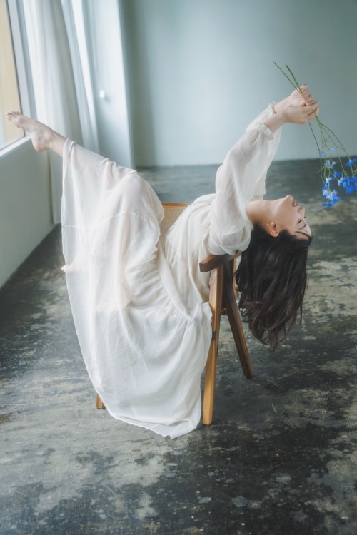 3枚目の写真では椅子を使い大きな動きをつけて撮影しました。静寂さと大胆な動きがマッチして躍動感のある写真になっています。