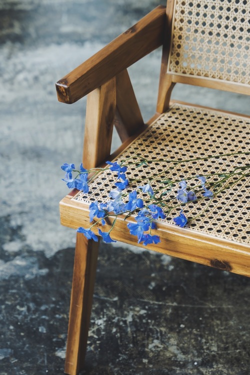 美しさを表現する上でのプラスアルファの要素として、花を取り入れて撮影するのも1つの表現に繋がります。今回は季節を意識して初夏らしい青色の花を取り入れてみました。