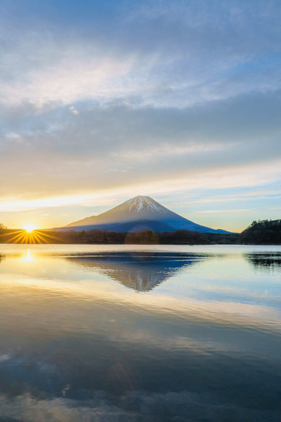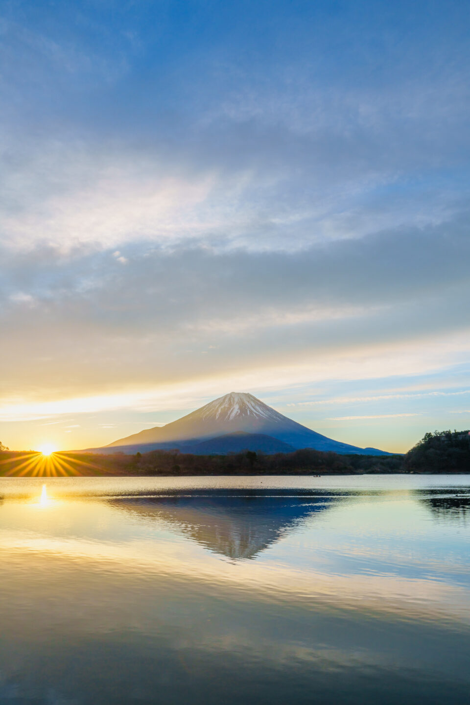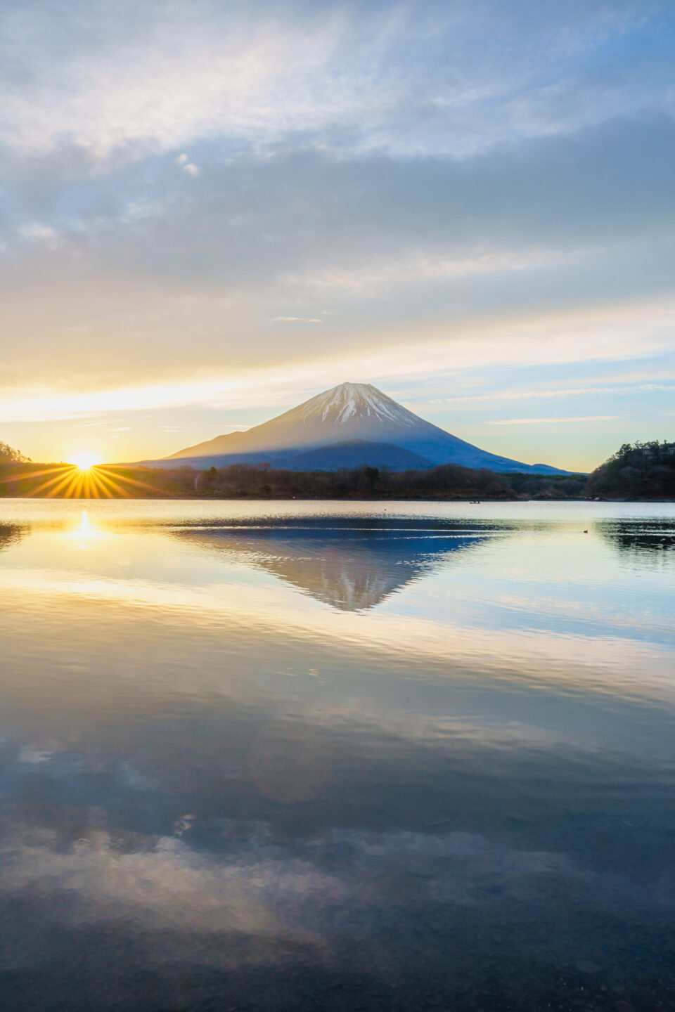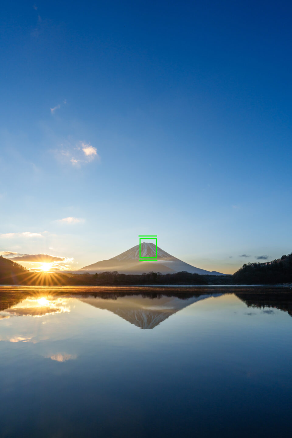 逆さ富士が綺麗だったので、最もバランスが良くて歪みも少ない日の丸構図で撮影しました。額装して飾るのに良いかもしれませんが、スマホの待ち受けや年賀状には使いにくい構図です。