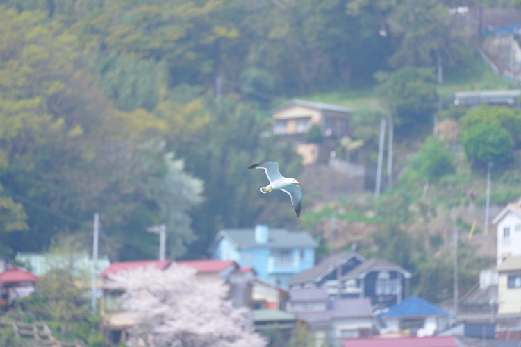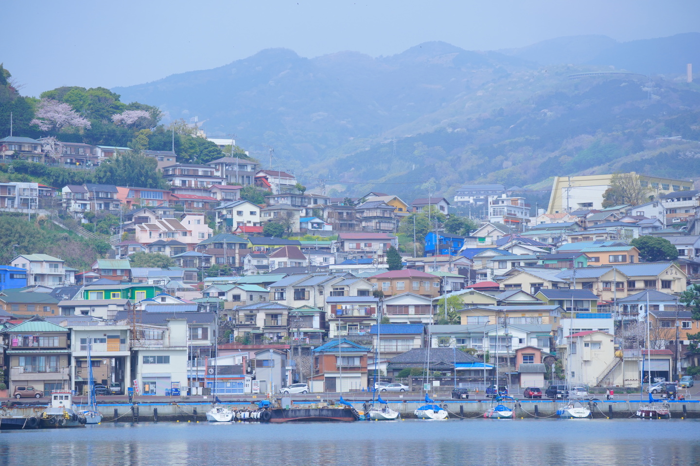 真鶴。遠くに連なる家々を密集しているように撮影。