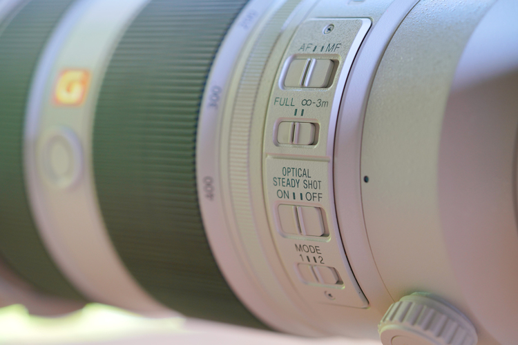 上から、フォーカスモードスイッチ。オートフォーカスとマニュアルフォーカスの切り替えができる。二番目は、フォーカスレンジリミッター。あらかじめ合焦する範囲を限定し、迅速なフォーカシングを可能にする。例えば、遠くで飛ぶ鳥などを撮影する場合は∞-3mに設定しておくと、センサーから3mの範囲にはピントが来ないので便利。三番目は、手振れ補正スイッチ。オンにすれば手振れ補正が効く。一番下は、手ブレ補正モードスイッチ。躍動感溢れる流し撮りを撮る時はMODE2が便利。また、ズームリングとフォーカスリングの間にある白くて円形のフォーカスホールドボタンは、コンティニュアスAF時でもボタンを押すことによりピント位置を固定できる。フォーカスホールドボタンはボディでのカスタマイズにより、好みの機能を割り当てることが可能。