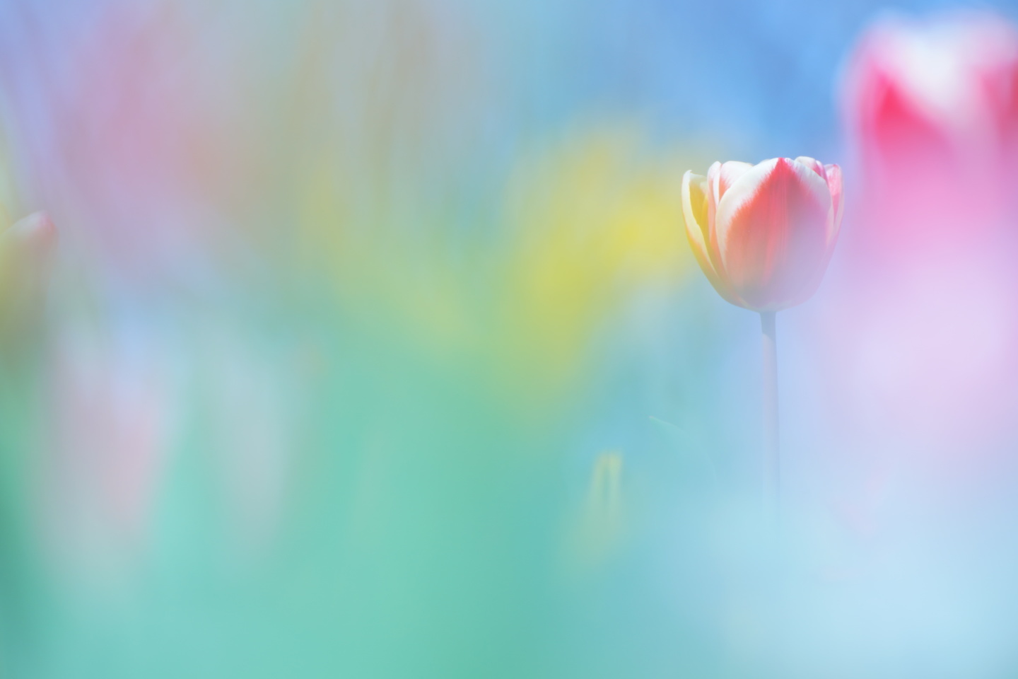 最大望遠400mm側、背景がギュッと圧縮されとろりとぼけているその写真たちは、まるで水彩画で描いたような世界。前ボケの被写体が柔らかいベールのように全体を覆っているような撮影ができる。まるでカラーフィルターをかけたような柔らかい色の重なり。この優しい色の重なり方は超望遠レンズならではだ。被写体のお花は遠いので、人間の目ではもちろんこんな世界で見ることはできない。カメラとレンズが描き出す世界。超望遠Gマスターレンズならではの圧倒的なボケ描写で優しいお花の楽園の世界を描くことが出来る。