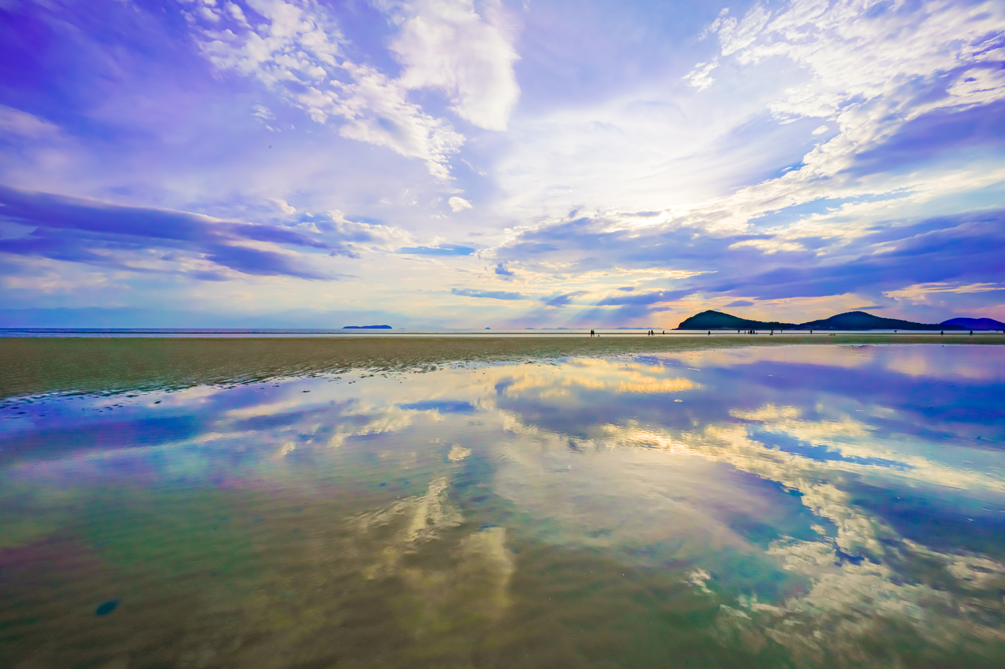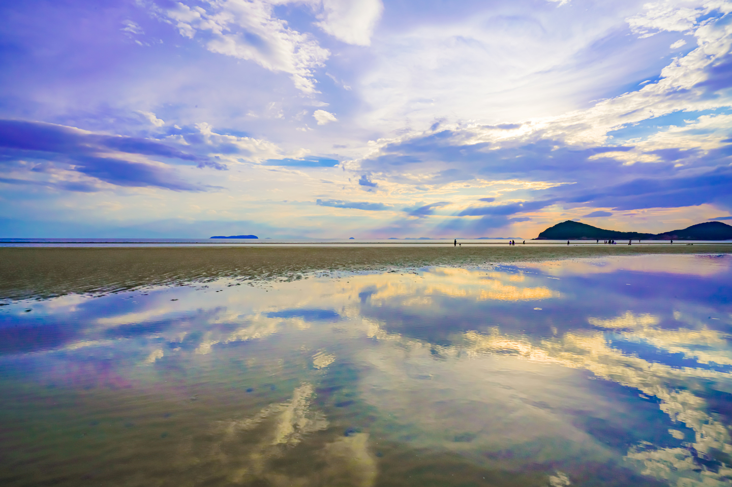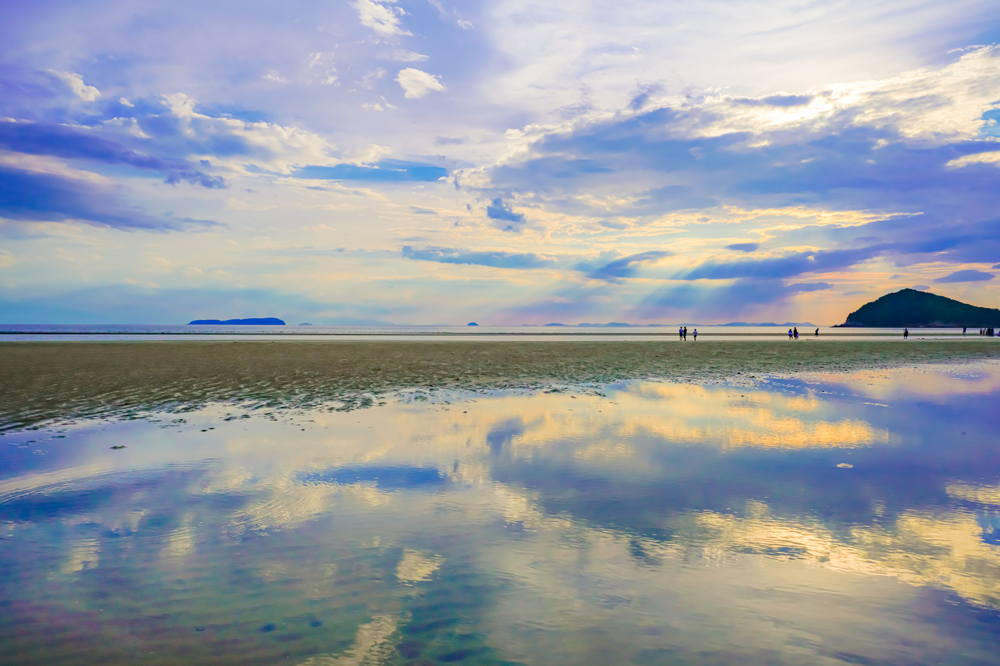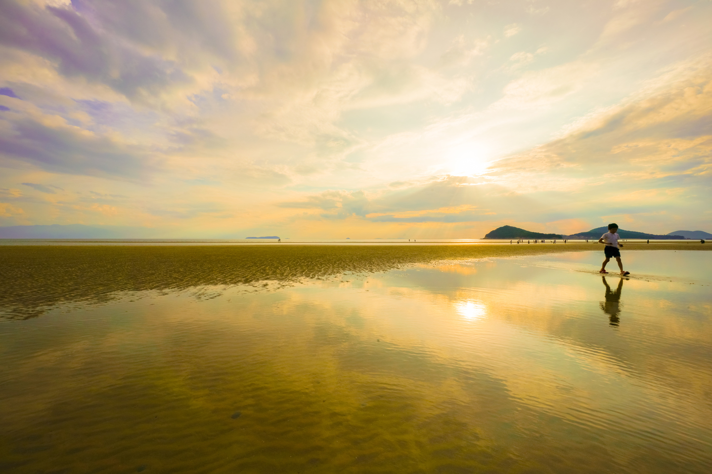 与島に後ろ髪を引かれながらも、急いで瀬戸大橋を渡ったのには理由が有った。その理由が、この砂浜に夕暮れまでに到着したかったからに他ならない。とは言え与島に予定より長く立ち寄ったので到着したのは夕暮れギリギリになってしまった。急いで撮影準備をして撮影ポイントを探し構図を決めようとしていると、母親に呼ばれて走ってくる少年が私の前を横切っていくので夢中でシャッターを切った。