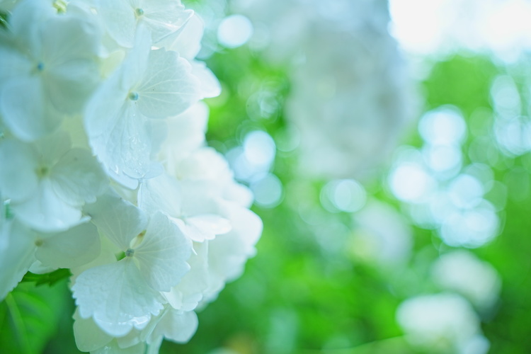 背景がトロリとボケたまま、アジサイも大胆に移った。