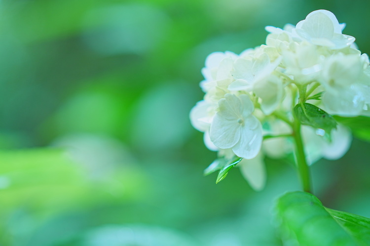 最短撮影距離に寄ることで、背景に大きなボケが生まれて、主役にグッと躍り出て魅力的なアジサイになった。