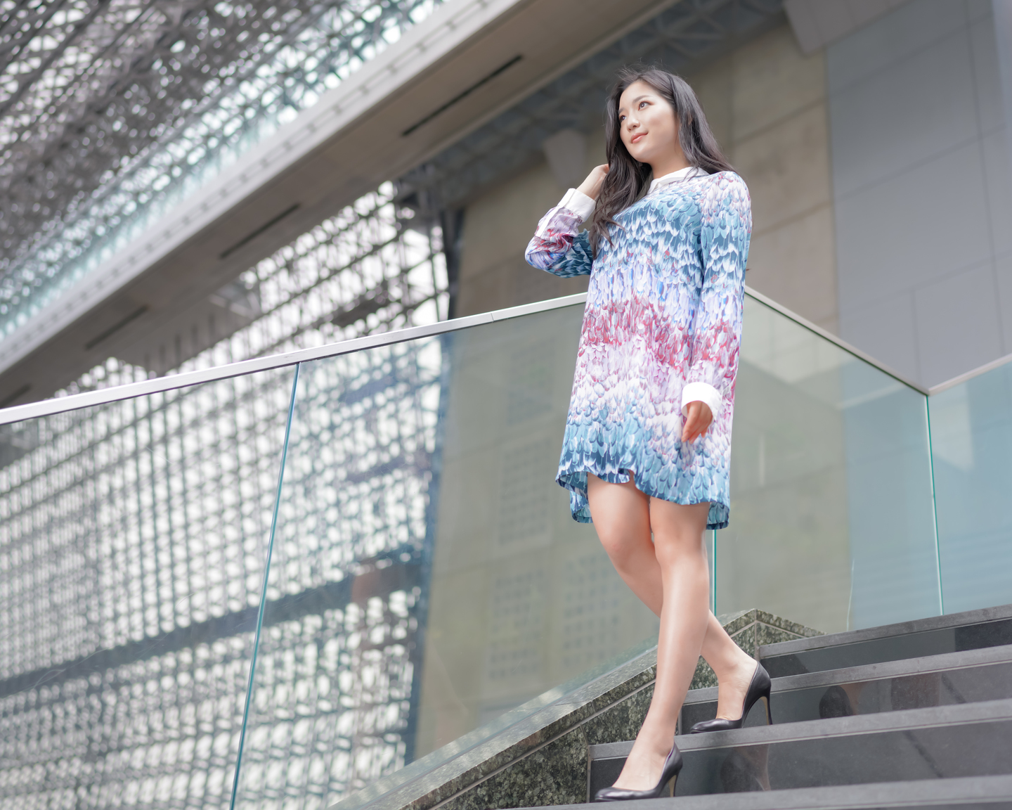 全身撮影の構図で横顔に近い状態でも瞳AFがきっちり作動しており、フォーカスをカメラとレンズに任せて、階段を下りるモデルさんの左足が階段の地面に付いた瞬間を切り取れるレスポンスの良さに満足しました。このレンズをポートレートに使用して感じた事は、透き通るような透明感の有るレンズという印象です。この透明感というのがポートレート撮影においてレンズ選びの凄く重要な要素だと考えているので、最初の撮影で早くもSEL35F14GMを好きになりました。
