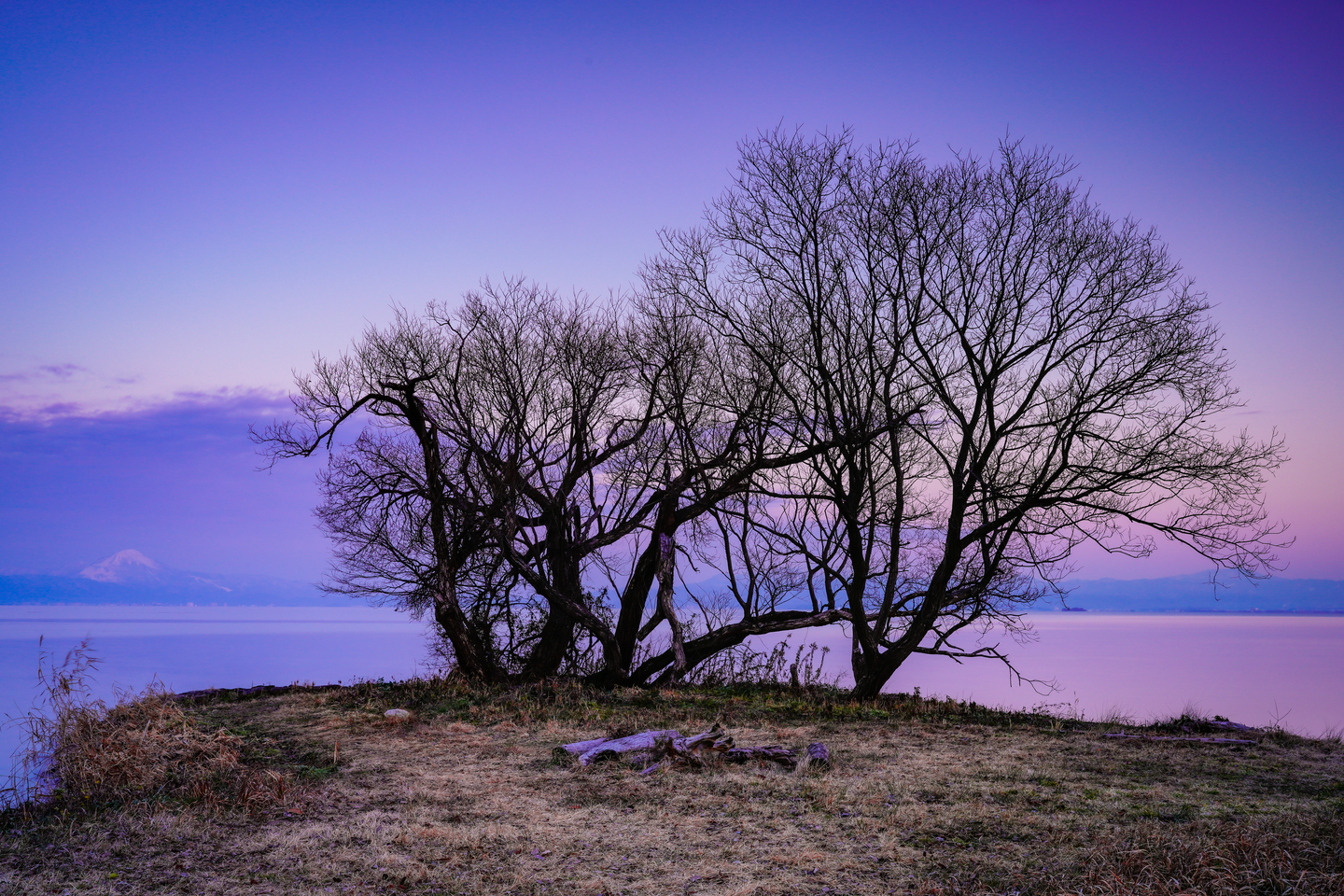 次は風景撮影です。一枚目は滋賀県高島市、琵琶湖岸の私の定番お気に入りスポットでの撮影です。夕暮れ時に優しい紫に包まれた琵琶湖と空に癒されながらシャッターを夢中で切りました。空と湖の淡い紫とコントラストの微妙な雰囲気を再現出来るかは、最終的にレンズに掛かっていると言っても過言では無いのですが、GMシリーズは本当に素晴らしくこのレンズも期待に応えてくれました。