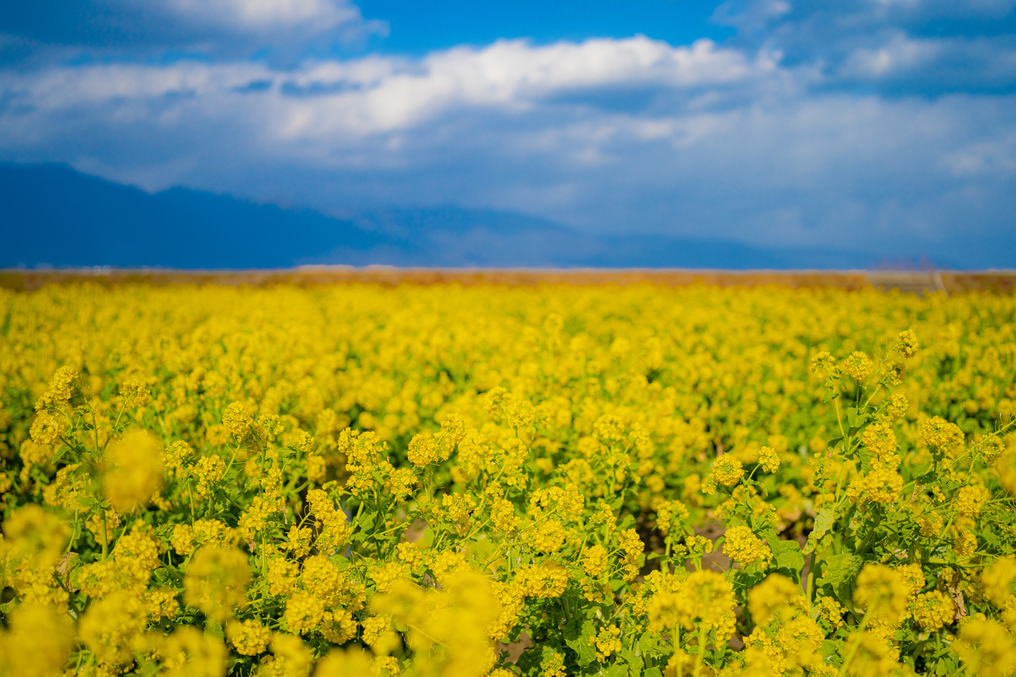 次は同じ滋賀県の守山市での撮影。早咲きの菜の花畑を開放F1.4で撮影。ポートレート撮影で確信した美しいボケを表現に使用して、ピント面の菜の花を浮き立たせてみました。発色に関しては先程の淡い色彩とは逆に今度は原色の被写体ですが、菜の花の黄色と茎や葉の緑、そして空の青、どの色も鮮やかに映し出してくれました。