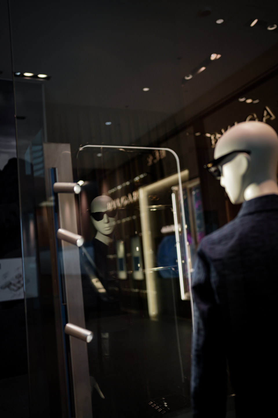 最後にスナップ撮影をしてみました。見つめ合うショーウインドウのマネキンの写真ですが、これも開放絞りF1.4で撮影。ピントを合わせた側のマネキンのシャープな解像感がこの写真の雰囲気を支えております。