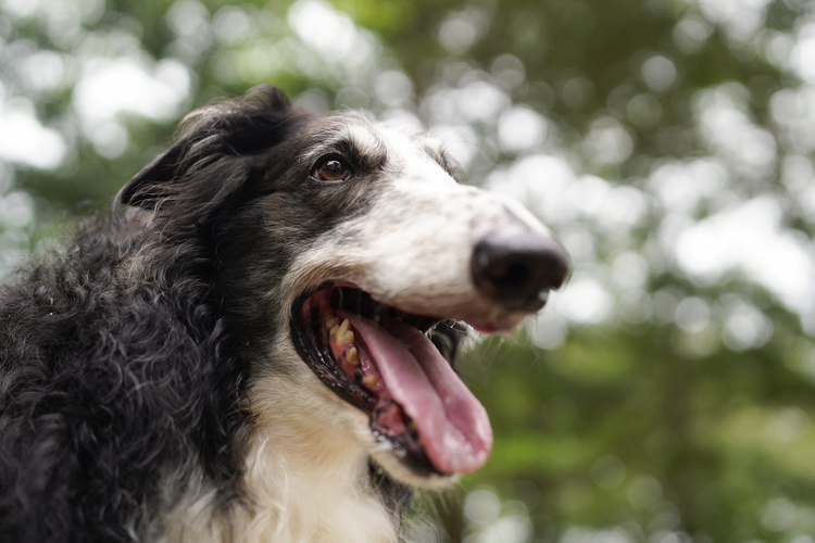 高い逆光耐性もこのレンズの魅力です。下の写真のように背景から光が沢山差し込む中での撮影であっても、主役のわんこはとても鮮明に、毛の質感もしっかり写っています。ペット撮影では特に瞳をキレイに写したいので、このように瞳のうるおいもしっかりと写してくれる描写力はとても心強いのです。