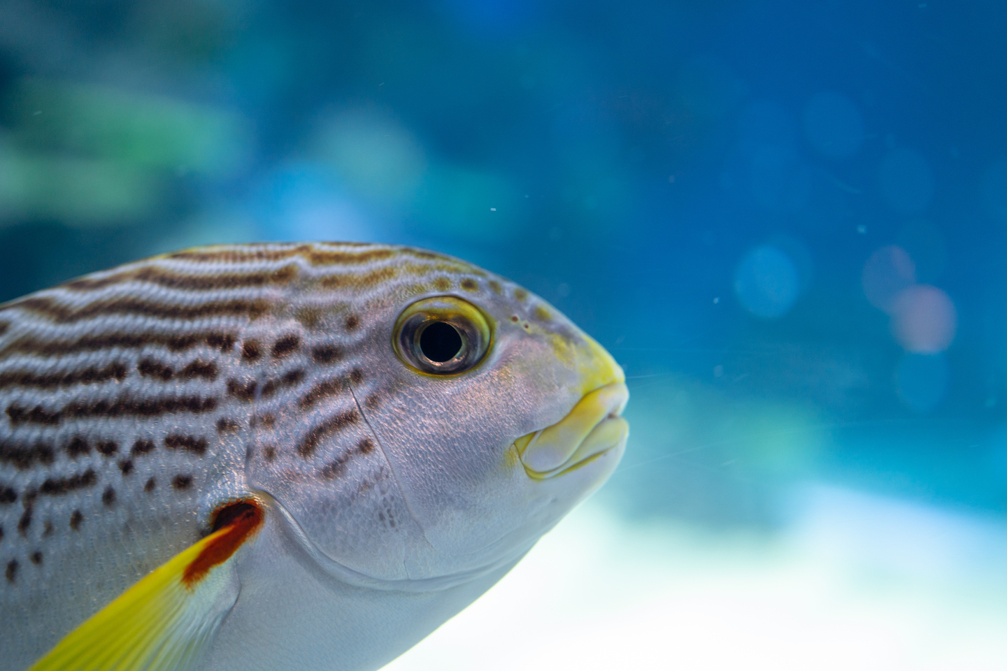 ガラス面近くに来た魚を撮った1枚。魚の質感や色味を忠実に再現。水の中&ガラス越しとは思えないほどの美しい描写力。