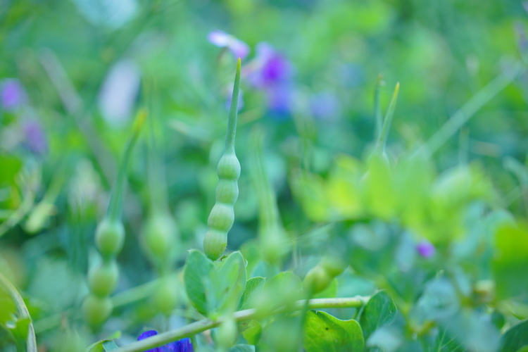 紫色のお花が見えたので近寄ってみると、ぷくぷくと実をつけたハマエンドウが風に揺れている。