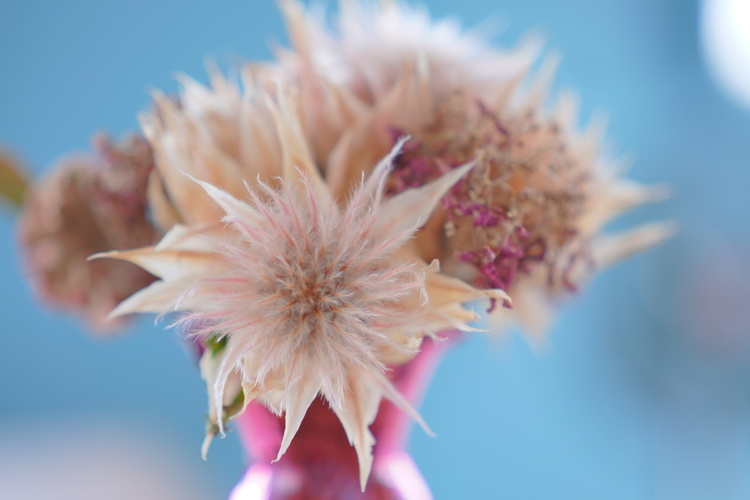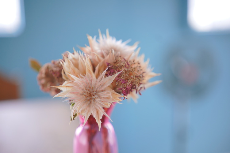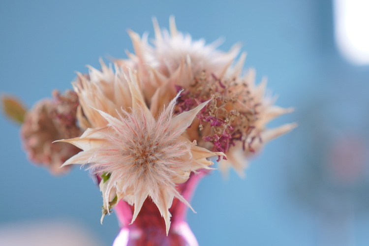 東京のアトリエに戻り、花瓶に活けたドライフラワーを撮影。