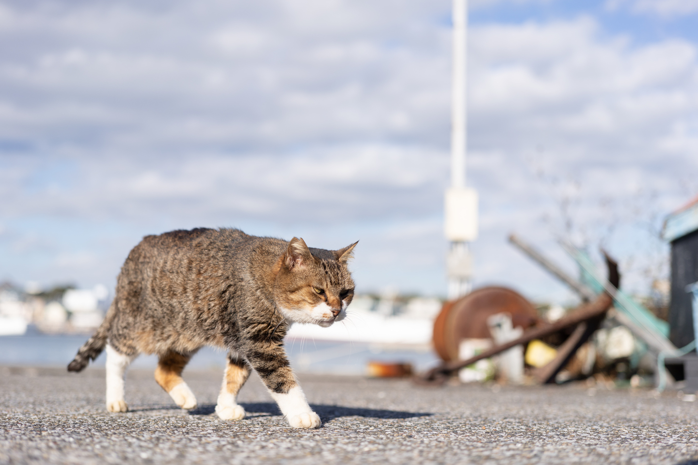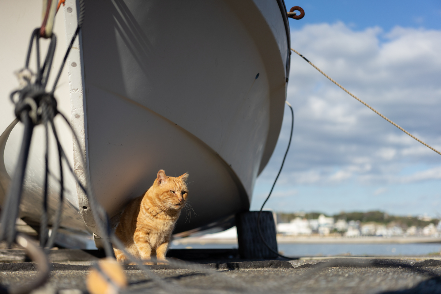 お散歩撮影に選んだ先は城ヶ島。のんびりとした雰囲気がある城ヶ島は私のお気に入りで、猫もたくさんいるのでお散歩撮影にはぴったりです。この日は気候も良く少し歩くとあちこちでくつろぐ猫を見かけました。今回使用した50mmレンズはスナップやお散歩撮影でちょうど良いレンズです。軽量コンパクトと来れば、長時間持ち歩いていても苦になりません。