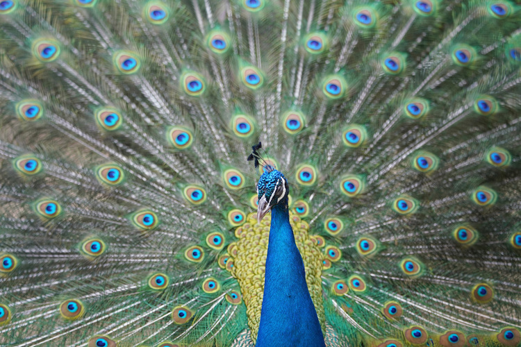例えば動物園などでの撮影は、望遠効果と浅い被写界深度でフェンスなどの網をキレイに消す事が出来たりします。下のクジャクはかなり細かい網目のフェンス越しで撮影しましたが、フェンスにレンズを近づけて絞りを開放にする事でフェンスを消し去ってイメージ通りに撮影する事ができました。