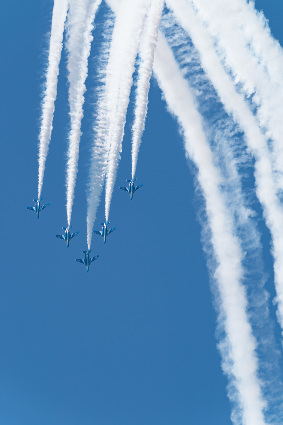 下の写真はブルーインパルスの展示飛行をα9とFE 70-200mm F2.8 GM OSSに2倍テレコンバーターで撮影したものですが、α9との組み合わせではオートフォーカスの食いつきも問題なく被写体を追随してくれました。