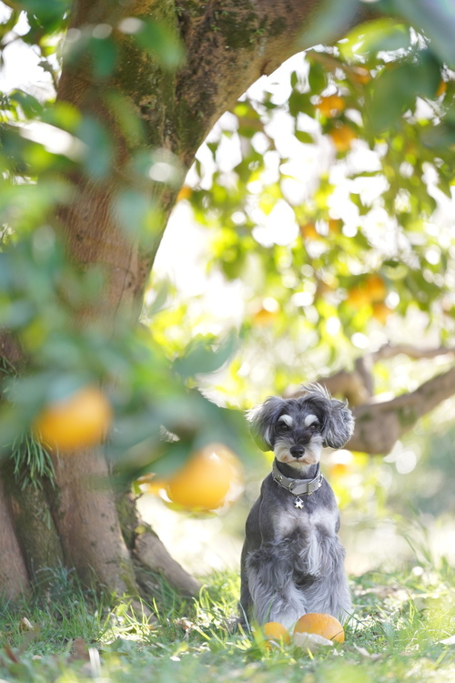 季節の花々とわんこを一緒に撮りたい。そんな時に欠かせないのが美しいぼけ味のこのレンズ。わんこやわんこの近くに配置した花はシャープにくっきり写り、背後に広がる花々はやわらかく優しいボケ味で包んでくれます。ぼけ味の他にさらに役立つ特徴は「圧縮効果」です。圧縮効果とは遠くにあるものが手前にギュッと引き寄せた(圧縮された)ように見える事。遠くの物が大きく引き寄せられるので遠近感が少なくなり密集したイメージの写真に仕上がります。わんこやにゃんこ撮影の場合、あえて被写体から離れて望遠レンズを使うのはこの圧縮効果を生かしたいからです。