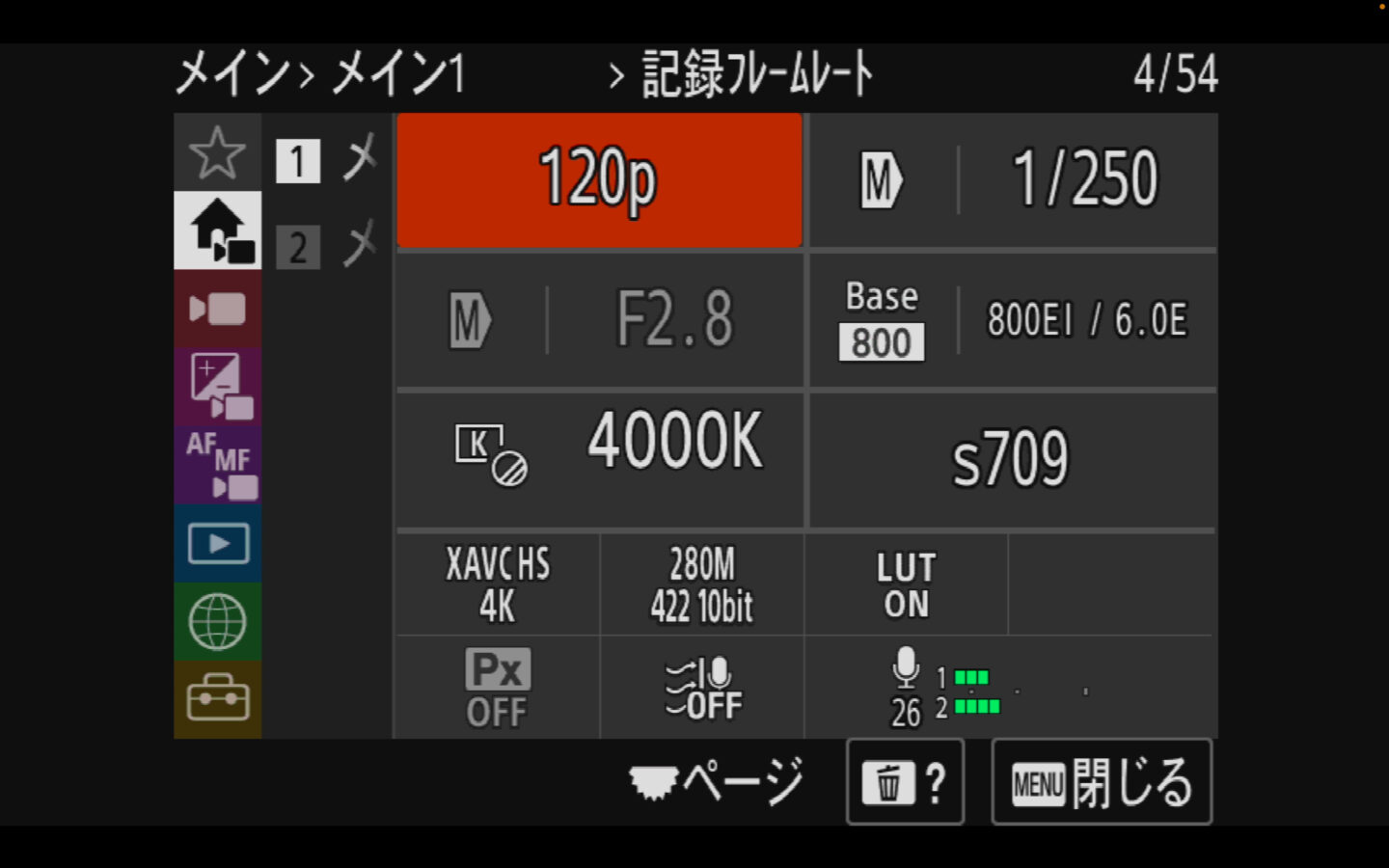 一番のお気に入りポイントは4K 120p、4:2:2 10bitで撮影できるところです。