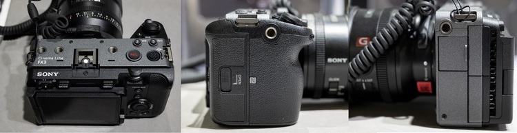 付属のXLRハンドルユニットを外すと大きさはα7S IIIとほぼ同程度に見えます。電子ビューファインダーが無くなり撮影画像は液晶モニターもしくは、外部モニターで確認するようになっており高さは約2cm低くフラットになっています。また、長時間撮影を可能にする冷却ファンが搭載されたことで奥行きは約4mm増しています。