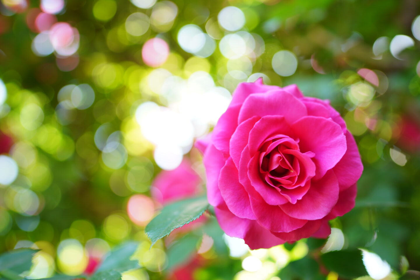 ではバラはどうでしょう? 花の正面からレンズを向けたとしても、花芯が見えるバラもあれば見えないバラもあります。花芯が見えるなら花芯でいいですし、見えないなら花びらの巻いている中心でいいんです。花全体にピントが合っていなくても大丈夫です。