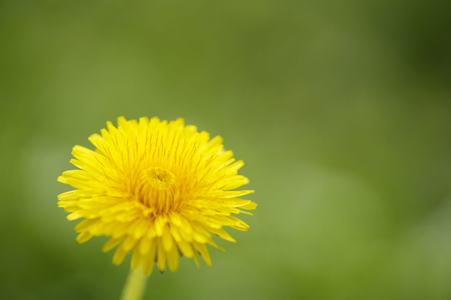 んじゃもうひとつ。タンポポならどうでしょう? この角度だと花芯といっても奥行きがありますねぇ。手前に合わせたものと奥に合わせたものを比べてみると、手前に合わせている方がすっきり見えませんか? 奥に合わせたものは手前の花芯が中途半端にボケているので気になるだけでなく、ピンボケのように見えてしまいます。だからこの場合は手前にピントを合わせた方がすっきりしますね。