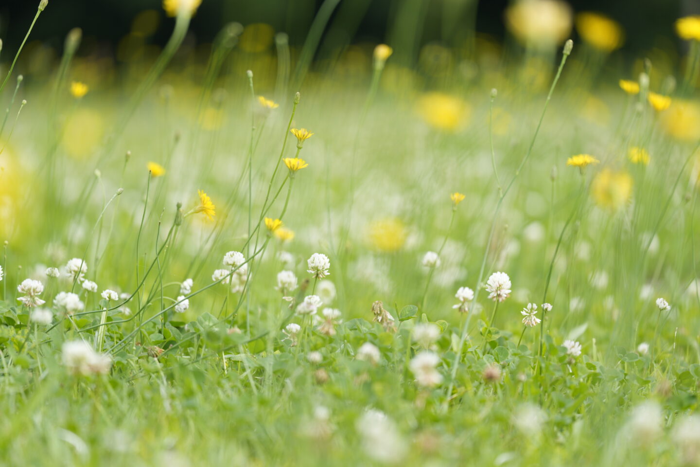 花畑のように、たくさん咲いているところで前後のボケを使って一部分にピントを合わせるとき、花がありすぎてどこにピントを合わせたらいいのかわからなくなりますよね。正直言うと私だってわかりません(笑)。こういうときはMFに切り替えてピントの位置を手前から無限遠の方向にジワジワとずらしながら、ピントの位置が変わるとどんな印象になるのか確かめながら撮影し、このように複数枚撮影した中から一番いいなと思うものを選ぶようにしています。