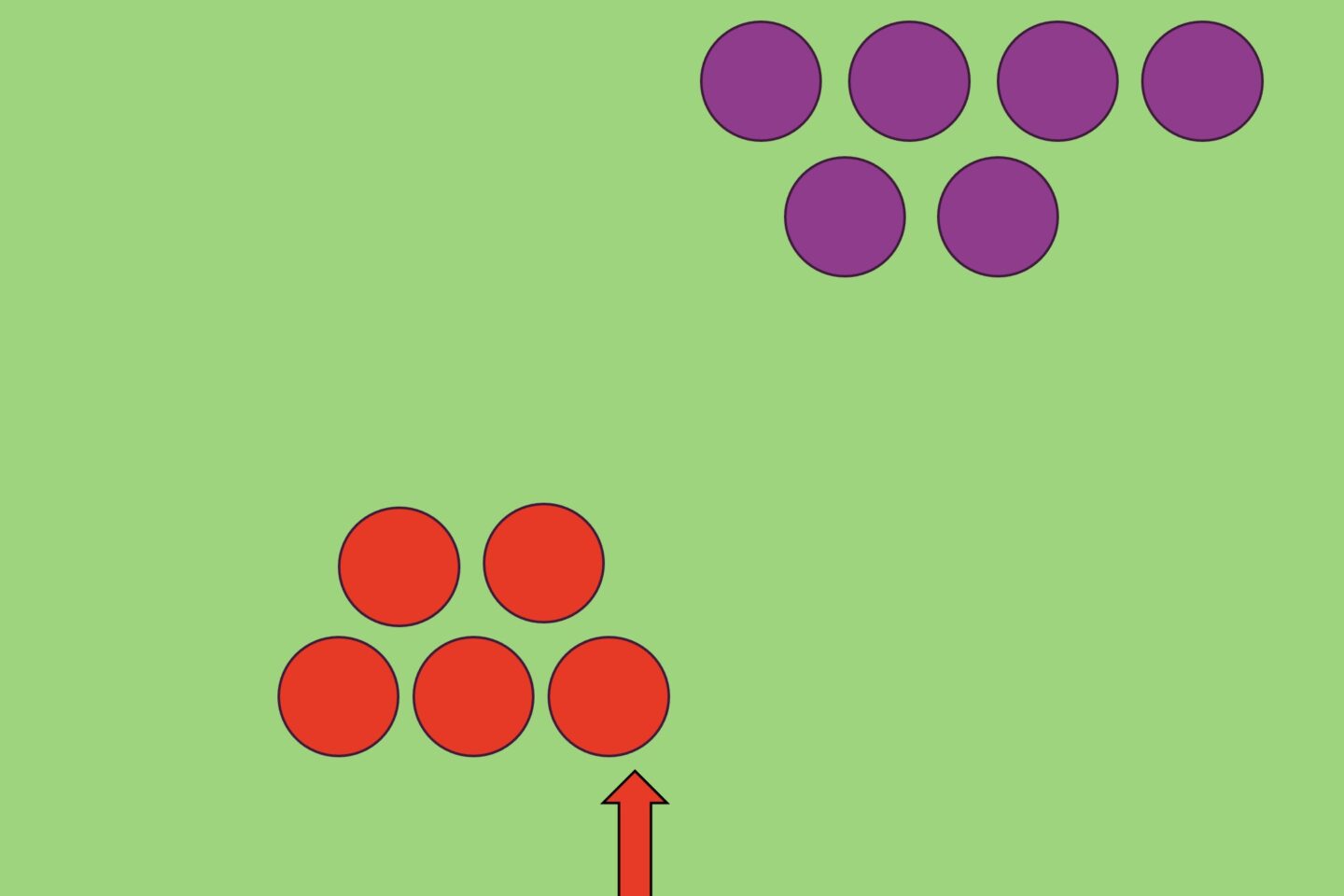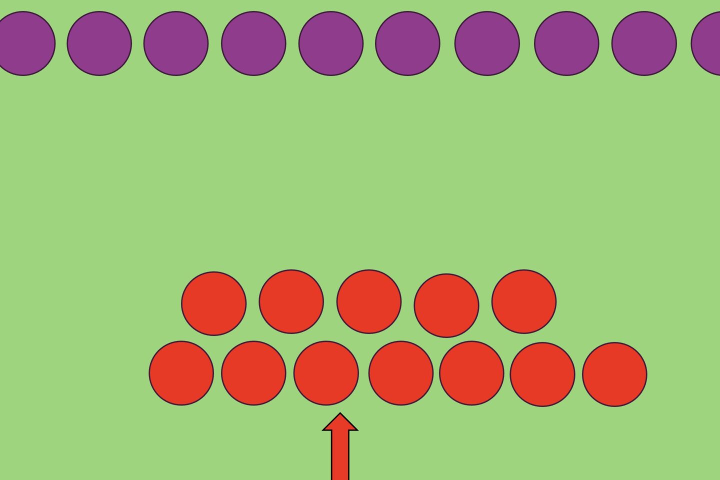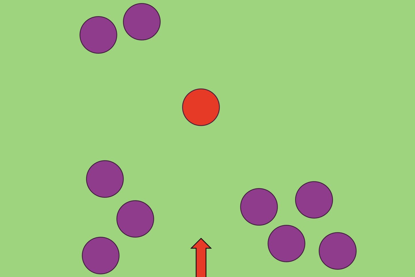 上の写真のチューリップの配置を表した俯瞰図です。ピントを合わせたチューリップが赤丸、レンズは画面下方向から向けています。小さくフレーミングしても、ひとつのチューリップだけにピントを合わせるにはピントの合う範囲の狭い望遠レンズを使い、絞り値を開放にする、という設定以外に、ピントを合わせる被写体の周囲(15〜20cm以上)に他の被写体がない条件を探すのがポイントです。
