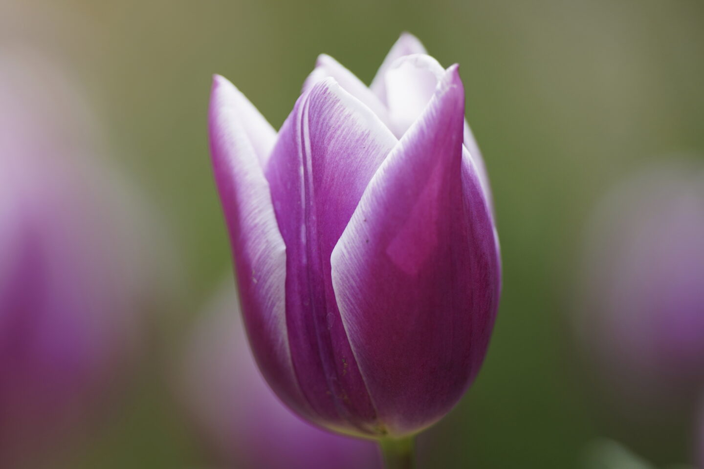 この写真を見て紫と白のチューリップの色と形以外に何か感じられることがありますか? なんとなくこのチューリップきれいだな、と思うだけでは今までと同じような写真になりがちです。このチューリップの色と形以外に何がキレイだと思うのかを考えてみましょう。