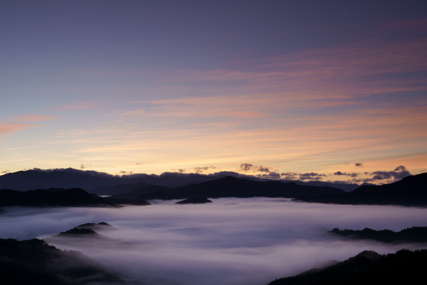 【写真1】は太陽光で撮影しているため光の色がストレートに描かれ、実際の風景が写真からよみがえってくるようです。しかしAWBで撮影した【写真2】では朝焼け空の赤っぽい光をカメラが偏った光の色だと判断。結果的に赤みを取り除いてしまい冷めたような空色に写ってしまいました。
