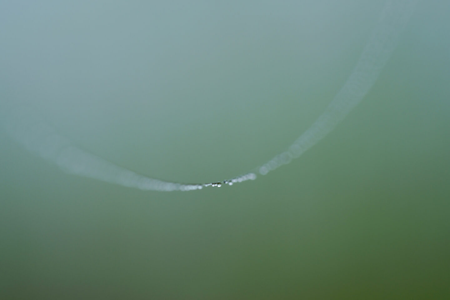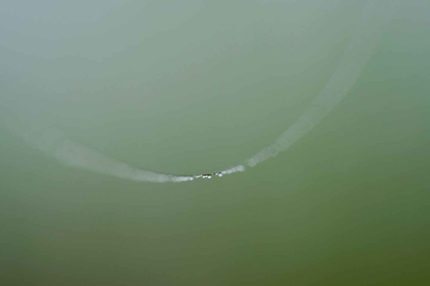 以下の3枚は雨上がり、蜘蛛の巣に着いた水滴を撮影したものです。マクロレンズを使いネックレスのイメージで描きました。どちらかというとAWBで撮影した【写真2】の方が肉眼には近いのですが、青味が湿度を感じさせ作品にプラスに働くと判断。太陽光で撮影した【写真1】をOKとしました。
