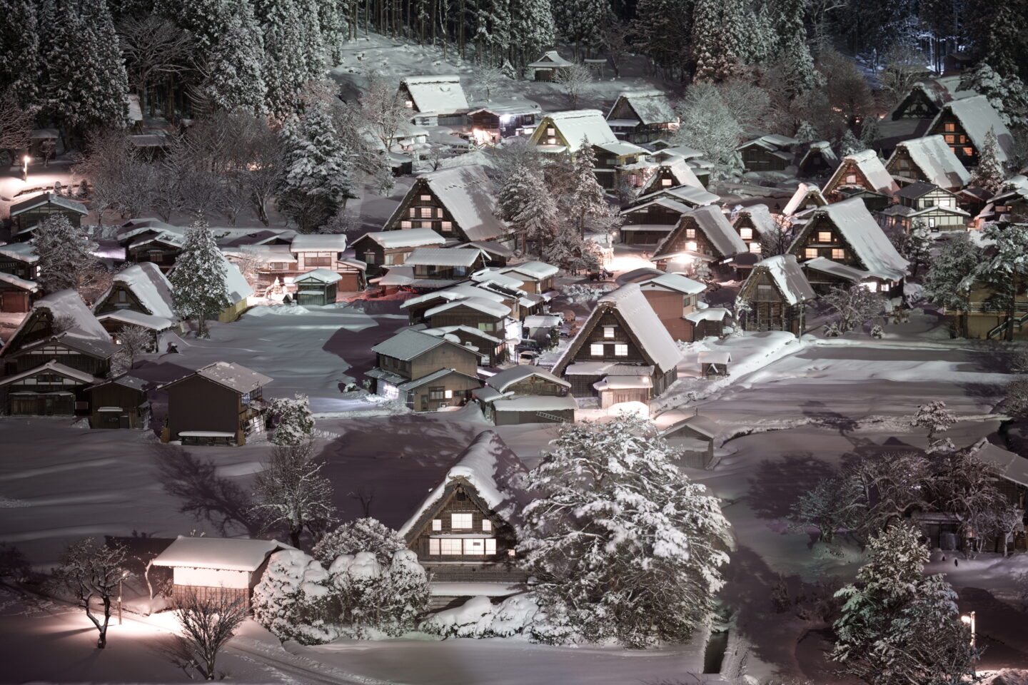 人工的な光の場合はその光源の色によって写真の色が大きく左右されてしまいます。以下の2枚は黄緑色っぽい光でライトアップされているのですが、【写真1】のように太陽光で撮影すると光の色ばかりが目立ってしまい雪景色らしさが出ません。一方、AWBで撮影した【写真2】では黄緑っぽい光の色を上手くカメラが打ち消してくれることで雪の白が表現出来ています。
