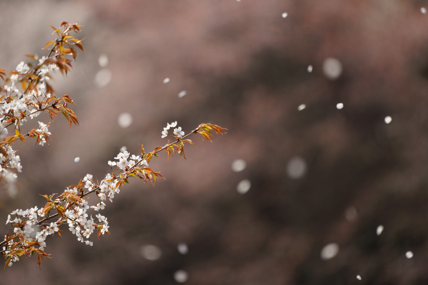 満開のピークを過ぎても美しい写真が撮れるのは桜ならでは。風にはらはらと舞う桜吹雪や水面に浮かぶ花筏にもトライしてみましょう。