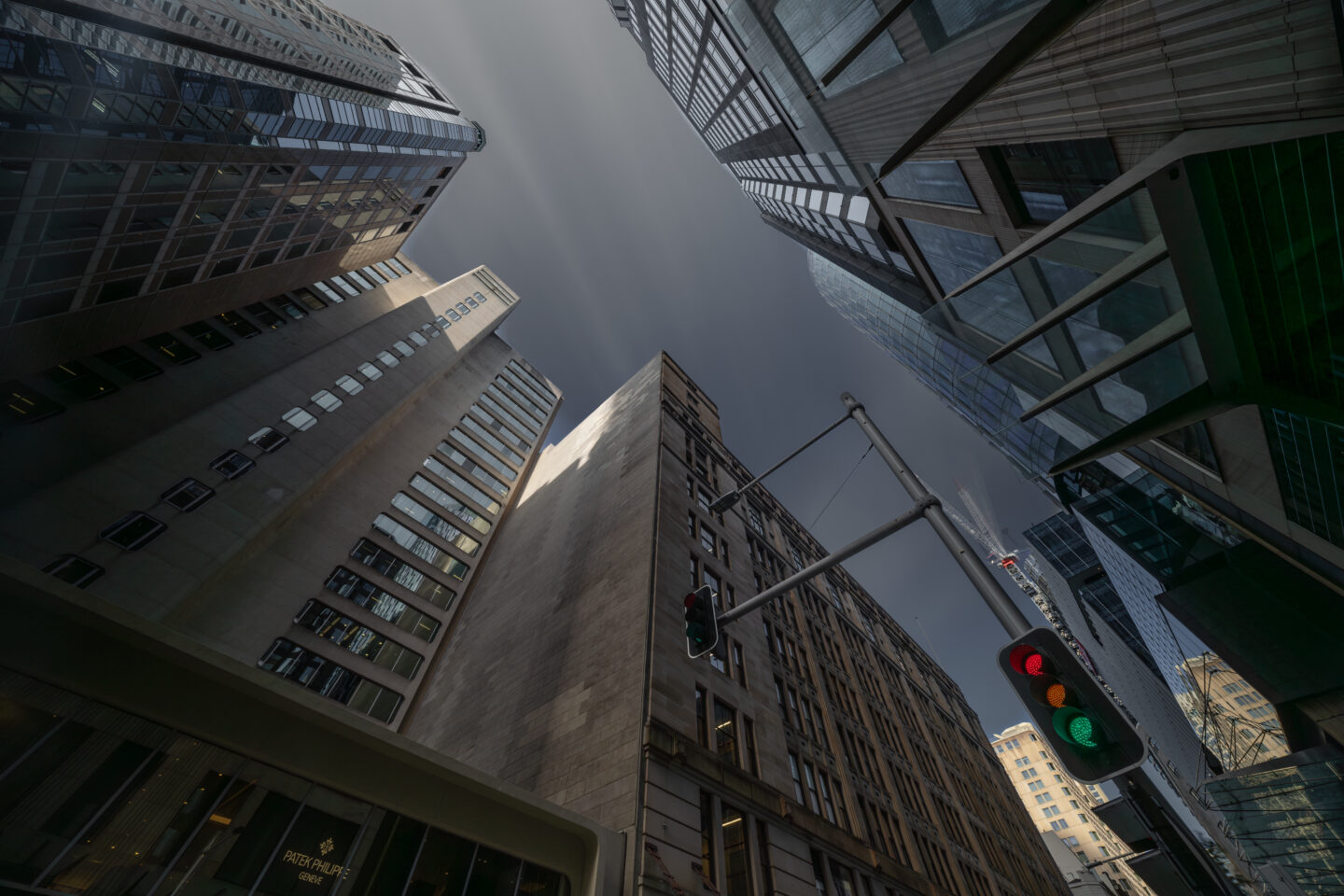 同じビルを撮っても、雲が横方向に流れれば画面は安定し、斜めに流れれば緊張感が出ます。