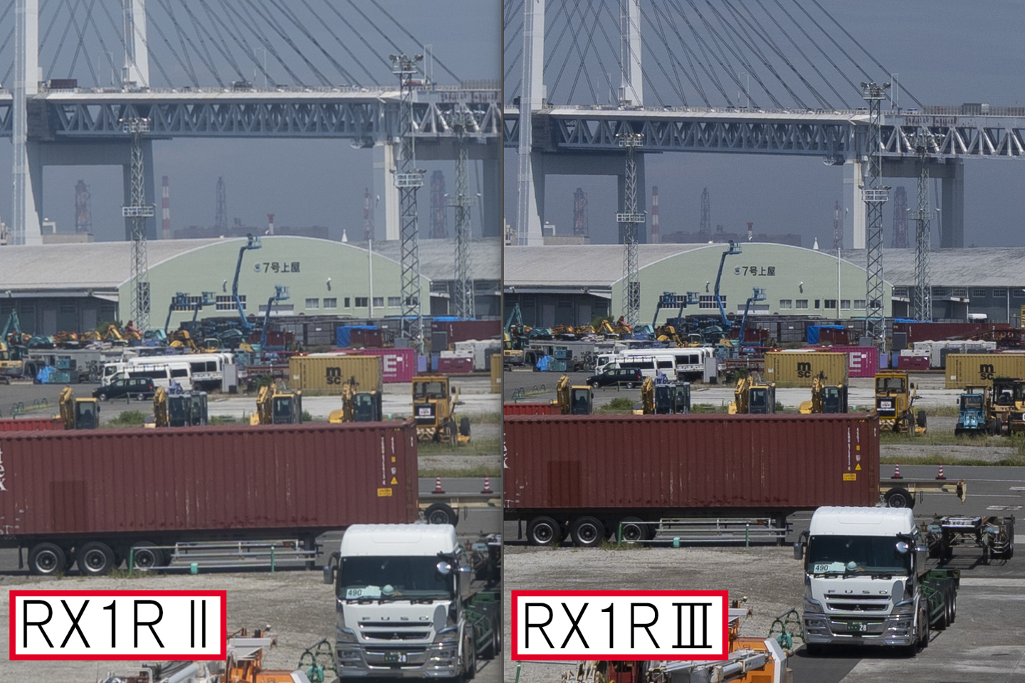 次に三脚を使用して同条件で撮影したRX1RIIIとRX1RIIをともにAdobe Camera Rawにて展開比較。データの結果は似ているものの、画素数の違いが素直に結果に現れている。ただ高感度域においてはRX1RIIも健闘しているように見える。
