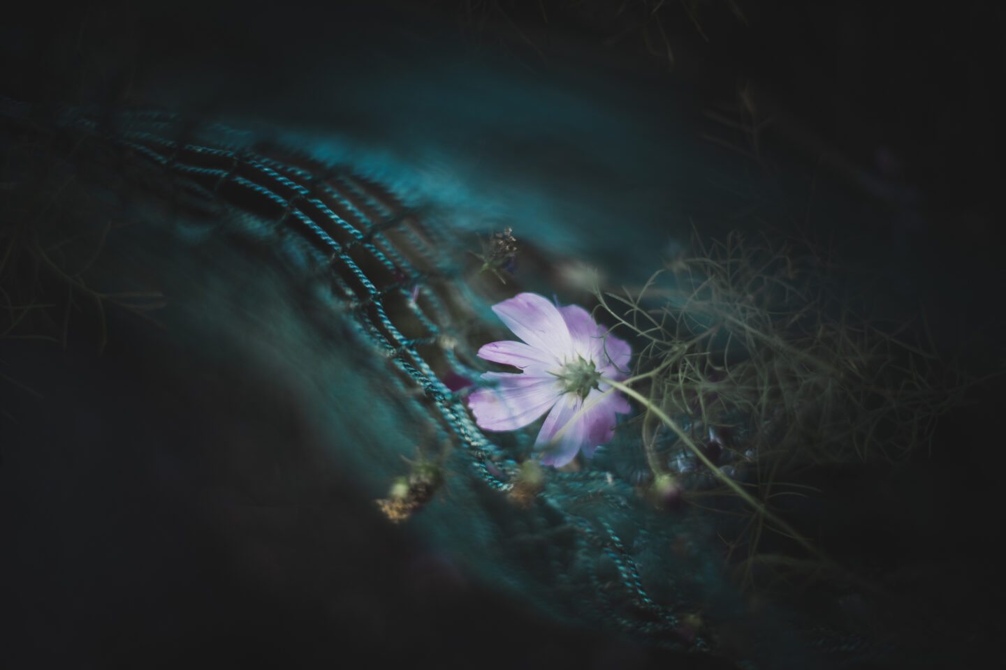 ゴミ捨て場のネットの中に一輪のコスモス。こんな場所だからこそ美しく感じられることが、写真を撮り続ける大事な要素なのだと思う。花の背中のように見える場所から撮って愛らしさを表現し、周辺光量をかなり落とすことによって一輪を際立たせてみた。