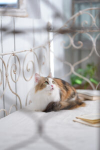 光が差し込むベストポジションでくつろいでくれたところをパチリ。撮影協力:きゃりこ武蔵野店