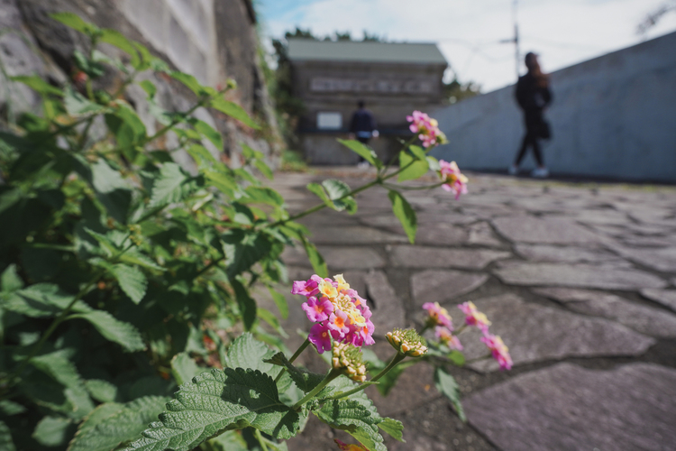 ZV-E10はバリアングルモニターなのでしゃがみ込んでの撮影も楽々。地面から生える花にピントを置き、背景を取り込んだローアングルでの一枚。このアングルではタッチフォーカスも活躍します。こうした角度で撮影が楽しめるのは小型軽量だからこそ。そして、背景がボケ過ぎないのでその場の雰囲気を感じられるこのレンズの良さが引き立ちます。