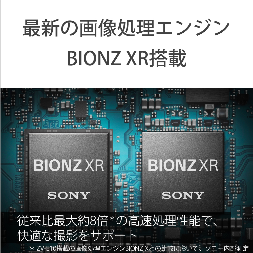多彩で高画質な撮影性能を実現するため、APS-Cサイズの有効約2600万画素の裏面照射型CMOSセンサーExmor R(エクスモアアール)と、最新の画像処理エンジンBIONZ XR(ビオンズエックスアール)を搭載。動画・静止画どちらの撮影においても高い描写性を可能にし、その場の雰囲気までをうつしとめます。常用ISO感度は動画・静止画時とも100-32000で、高感度でもノイズを抑えた撮影が可能です。