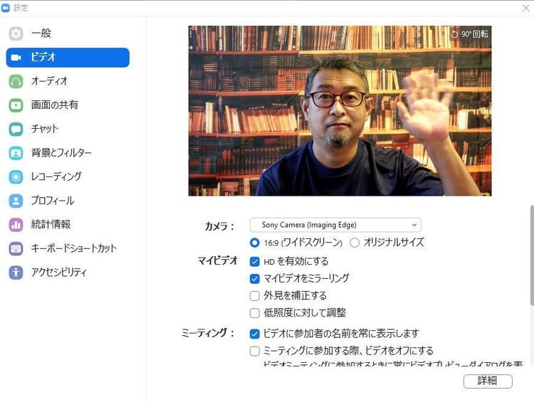 普段は仕事場のデスクトップカメラにWebカメラを付けて使用していましたが、Imaging Edge WebcamソフトをインストールしてVLOGCAM ZV-1をUSBでつなげた事によって、カメラが選択できるようになりました。
