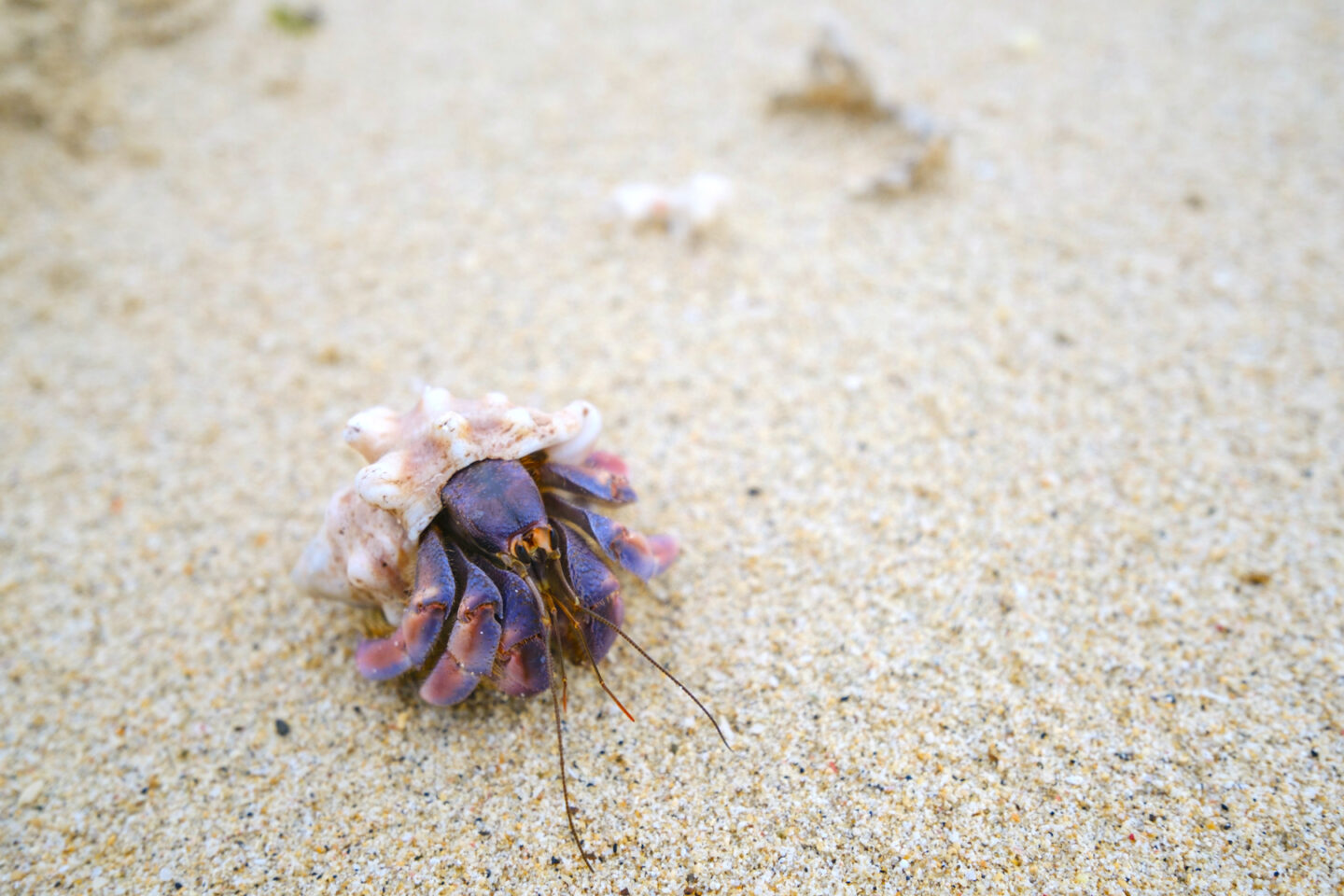 奄美大島で見つけたムラサキオカヤドカリ。なんだこいつ!な瞬間にもささっと撮れる。正面に回り込むとすぐに後ろを向いてしまうのだが素早いフォーカスのおかげで顔をゲット。