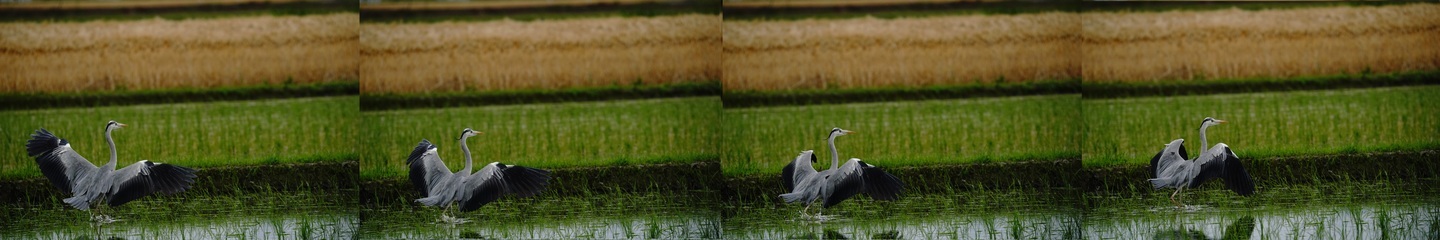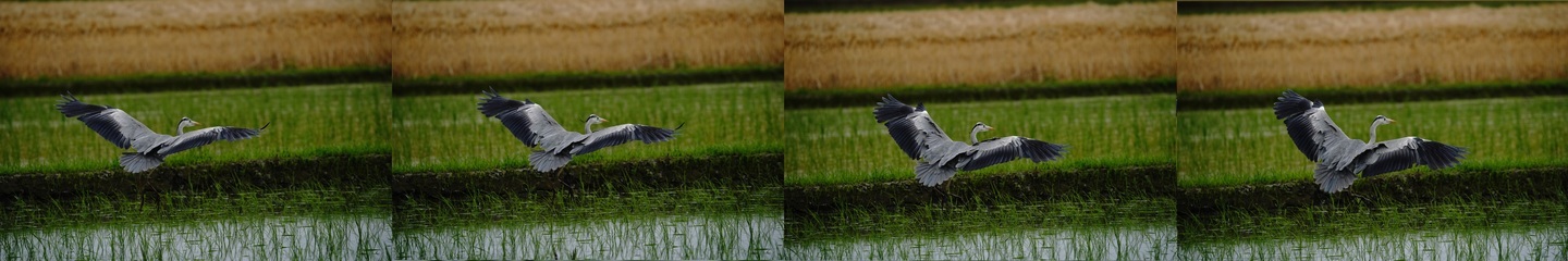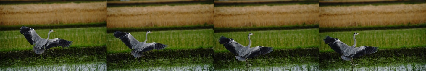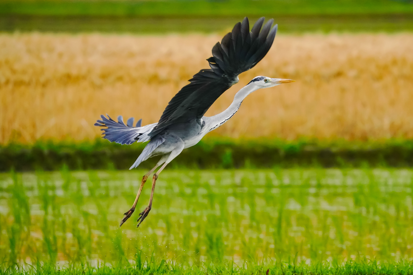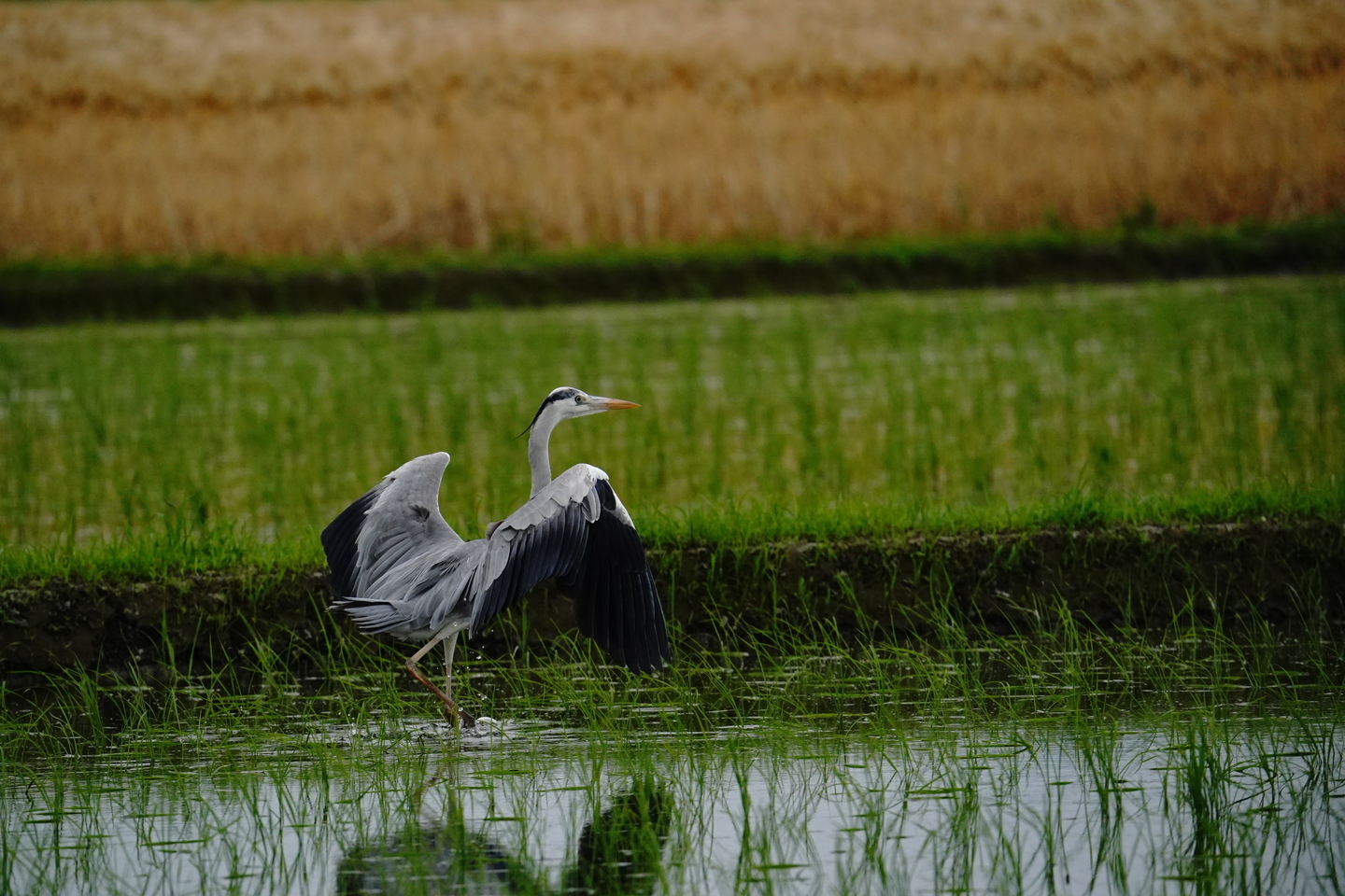 焦点距離150-500mmということで、田植え直後の滋賀県高島市でサギの撮影をしてみました。まずはα9に装着してみたのですが、超望遠500mmズームとしては比較的に小型軽量化が達成されており、手持ち撮影も可能なのでフットワークが軽く田んぼから飛び立つ瞬間のアオサギを軽快に撮影することが出来ました。