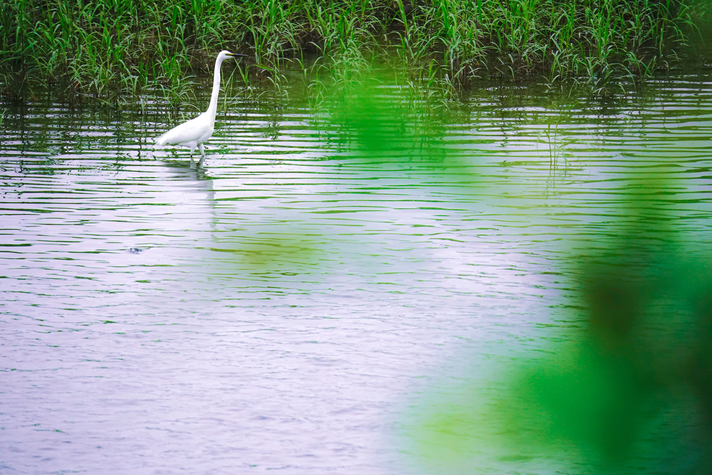 前ボケも良い雰囲気でとろけるので積極的に使いたくなり、前ボケ構図の撮影ポイントを探してシロサギを撮影。