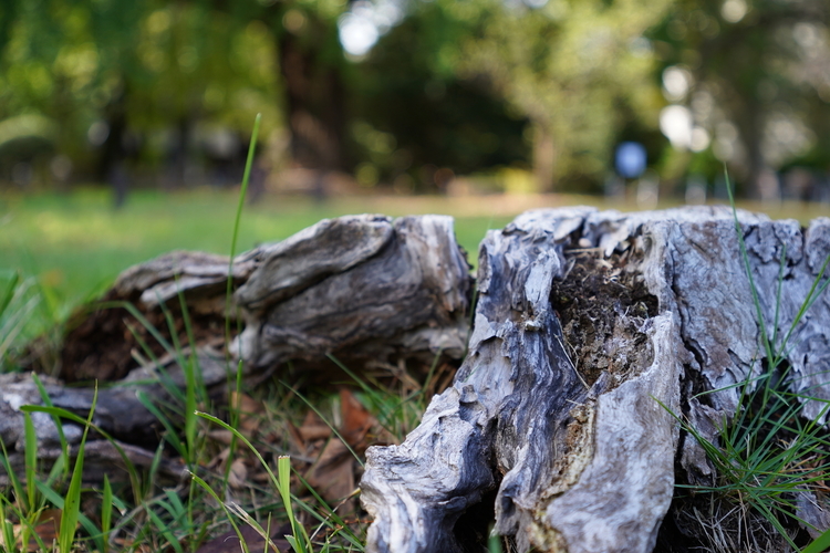 まずは絞り開放で、手前にある木の削れている部分にピントを合わせて撮影しました。開放からでもピントの位置はシャープに写してくれました。