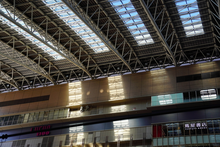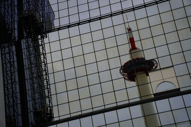 仕事の際に通りがかったJR京都駅の駅舎とそこに写り込む京都タワーのスナップ写真。このレンズは駅舎の鏡面ガラスの微妙な色の違いやコントラストも表現してくれます。