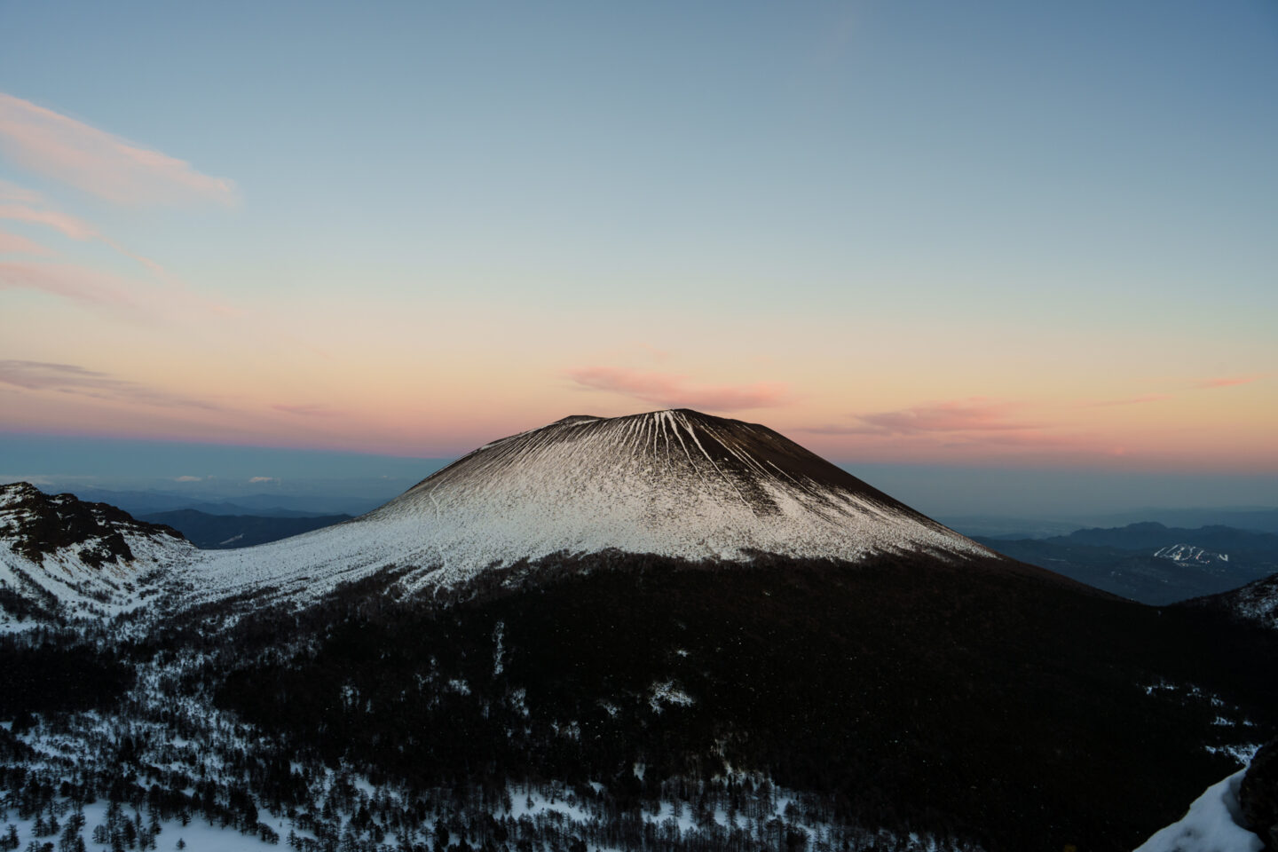 冬の浅間山に雪が積もった状態を「ガトーショコラ」と呼ぶそうです。後ろには濃いビーナスベルトが出現しました。
