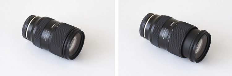 先代のストレートな外観と比べると、やや凹凸が付き、ホールディングが良くなりました。そしてツヤ感のあるデザインに一新され高級感がアップ!より所有欲を満たしてくれる仕上がりとなっています。サイズと重量は最大径75.8mm×長さ117.6mm、540gで先代とほぼ同じ。大口径F2.8の標準ズームレンズとしての小型軽量さはしっかりと継承されています。花型のレンズフードが付属します。