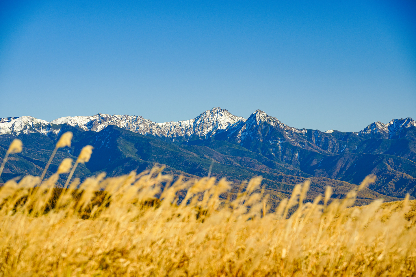 こちらも霧ケ峰高原ですが、遠方の冠雪し始めた山の解像感も良く、被写体までの距離を選ばず性能を発揮してくれました。ポートレートだけでなく準広角から望遠まで1本で補える明るいズームレンズは、旅の1本としても良い選択だと思います。