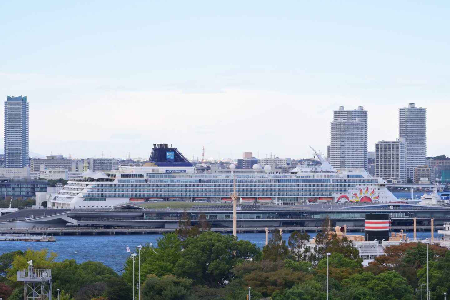 横浜にある港の見える丘公園の展望台から、みなとみらいの方を眺めると豪華客船が停泊していました。今までに見たことがないとても大きい客船は、初めて入港したノルウェージャン・サンと後日知りました。遠くに見える船も望遠ズームのおかげで大きく撮ることができてラッキーです。180mmで捉えると、レンズの圧縮効果で海と大さん橋と船がギュッとまとまり、自然と建造物に囲まれた港の様子がわかる光景になりました。F値を絞り込むと船室のひとつひとつをシャープに描写できました。色も鮮明で空気感のある港の臨場感も漂うようです。