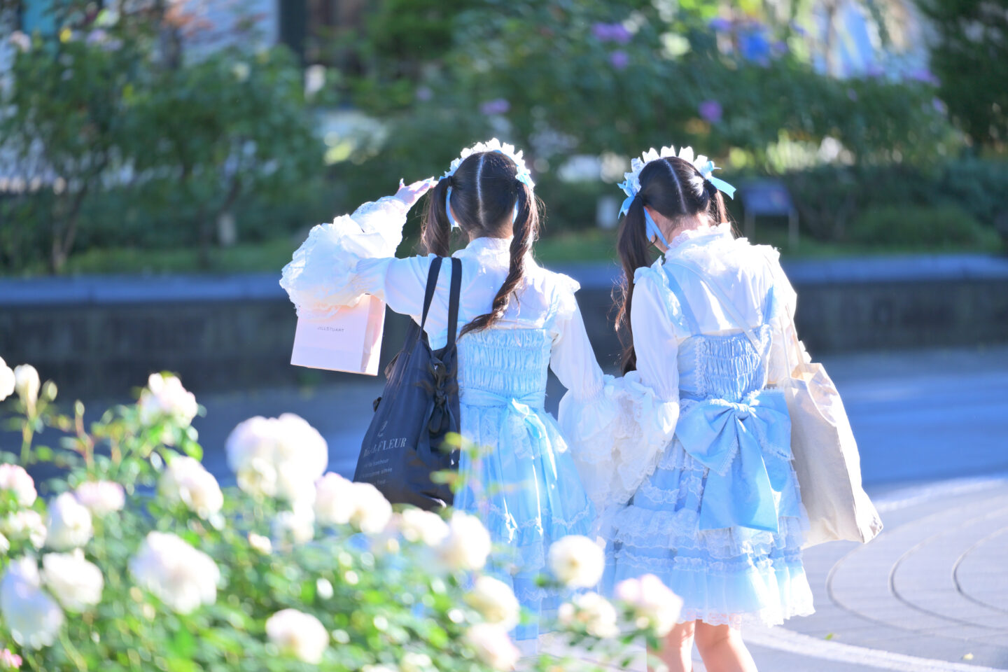 双子コーデの女の子たちがバラの向こうに歩いていく様子を自然な雰囲気で捉えることができました。あ!と思った瞬間、遠くても望遠ズームがあると逃さず撮ることができるのでうれしいです。ここではスナップでしたが、背景をボカした雰囲気のあるポートレートにも向くレンズだと思いました。